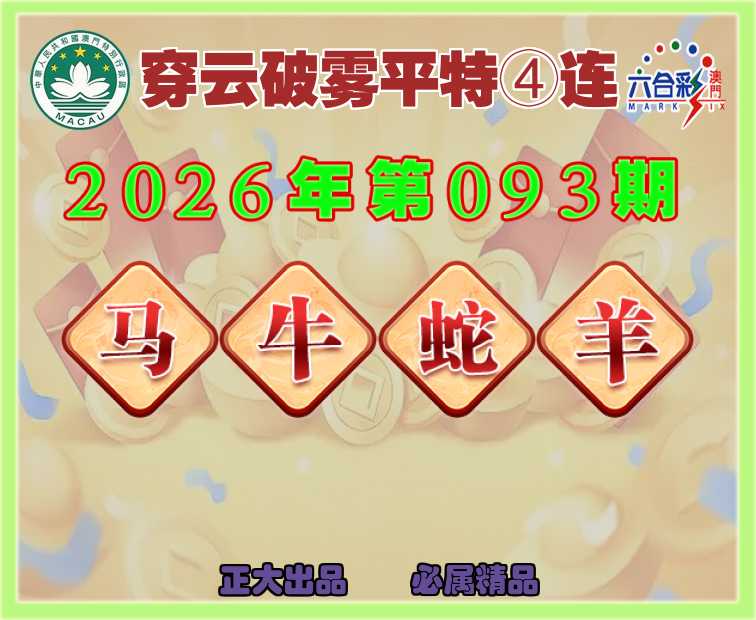 093期:『穿云破雾』 ✌️平特④连✌️【马牛蛇羊】开:马13,牛18,蛇26,羊48