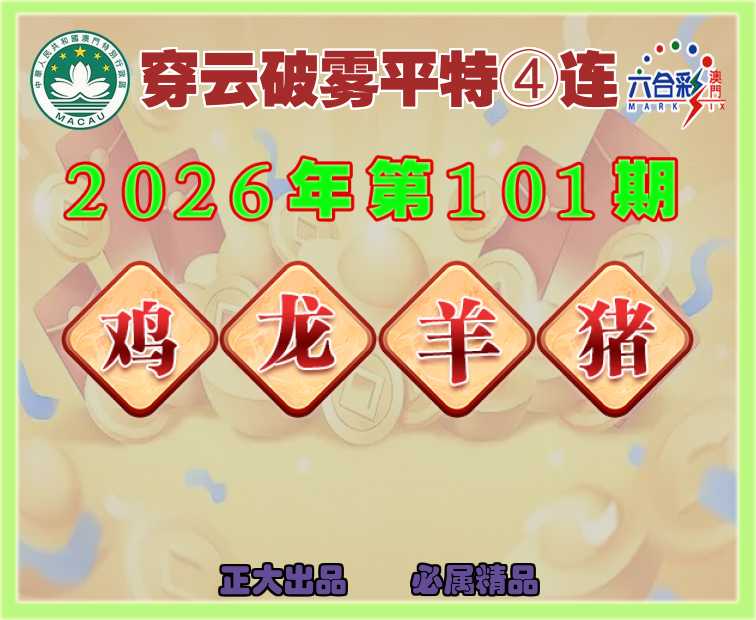 101期:『穿云破雾』 ✌️平特④连✌️【鸡龙羊猪】开:鸡22,龙39,羊12,猪08
