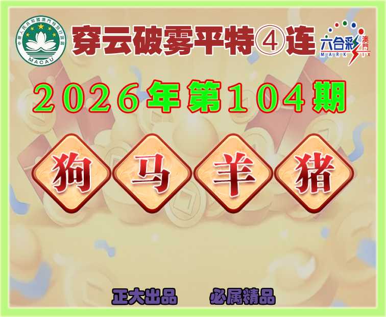 104期:『穿云破雾』 ✌️平特④连✌️【狗马羊猪】开:狗45,马01,羊48,猪20