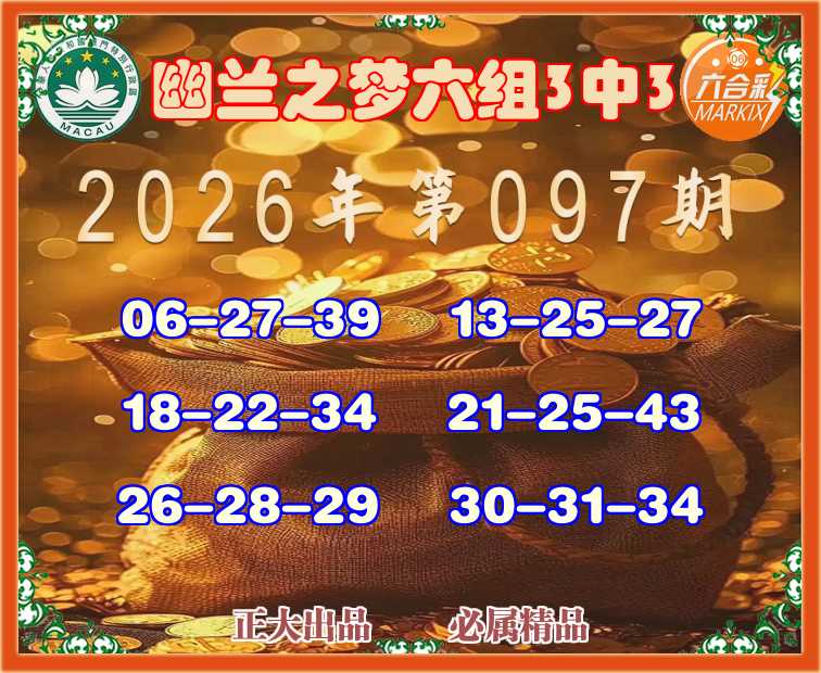 097期:【幽兰之梦】 🎉六组3中3🎉
