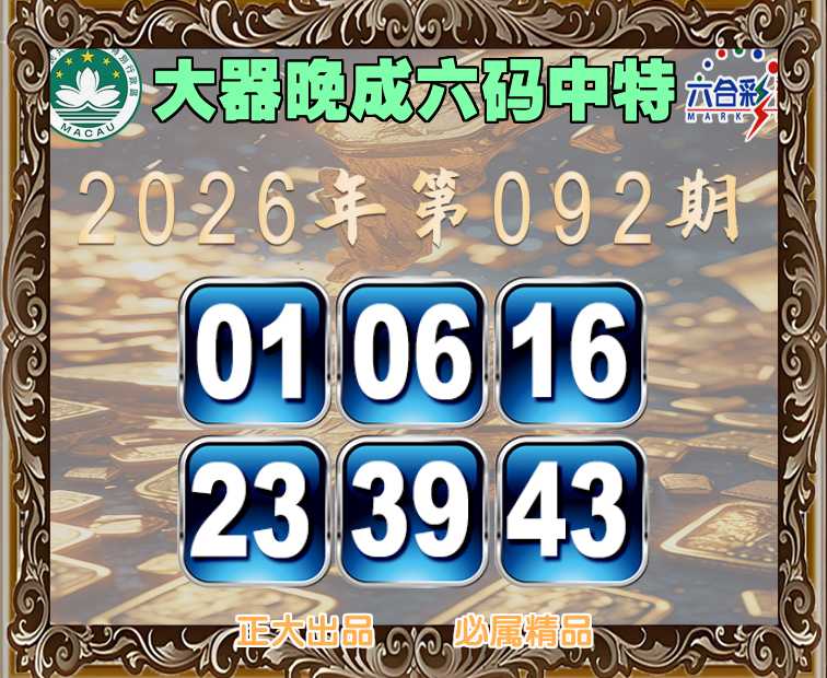 092期:【大器晚成】 🏵️六码中特🏵️【01.06.16.23.39.43】开:06
