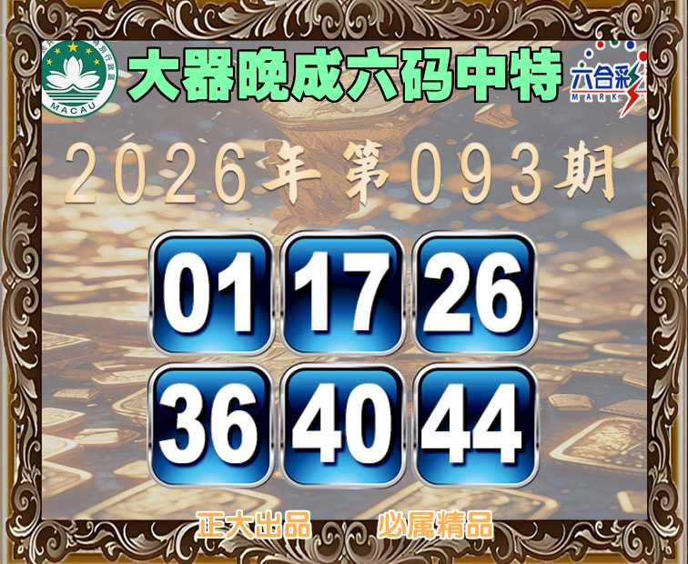 093期:【大器晚成】 🏵️六码中特🏵️【01.17.26.36.40.44】开:40
