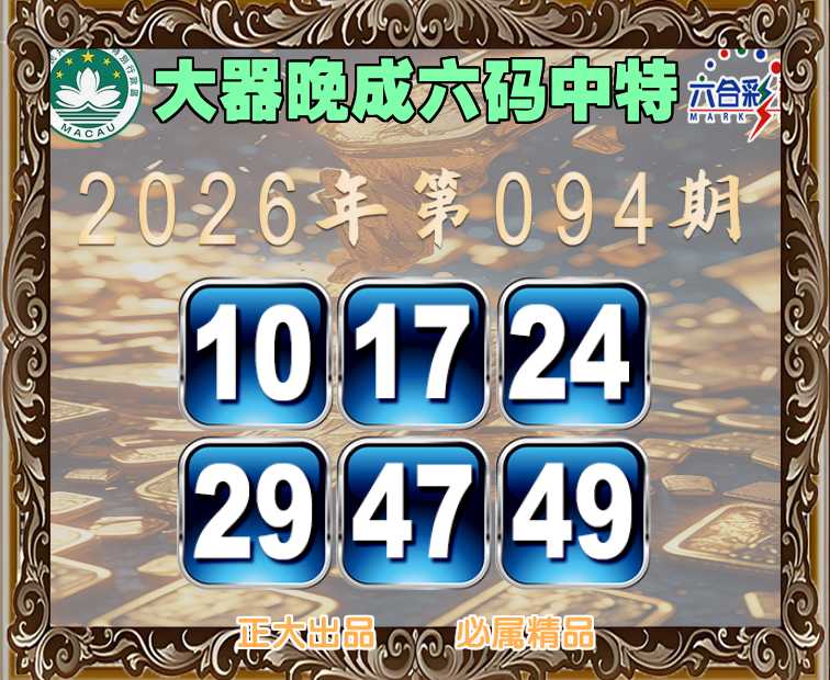 094期:【大器晚成】 🏵️六码中特🏵️【10.17.24.29.47.49】开:17