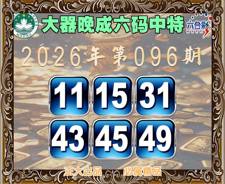 096期:【大器晚成】 🏵️六码中特🏵️【11.15.31.43.45.49】开:43