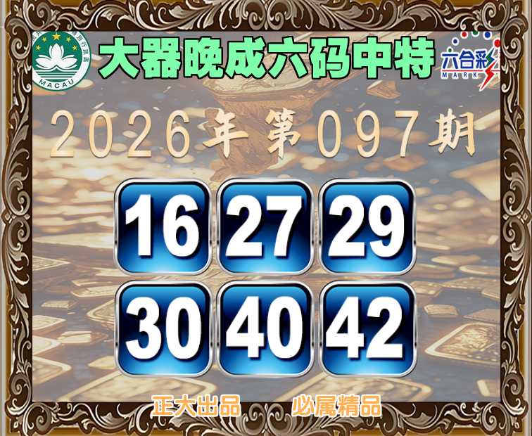 097期:【大器晚成】 🏵️六码中特🏵️【16.27.29.30.40.42】开:11