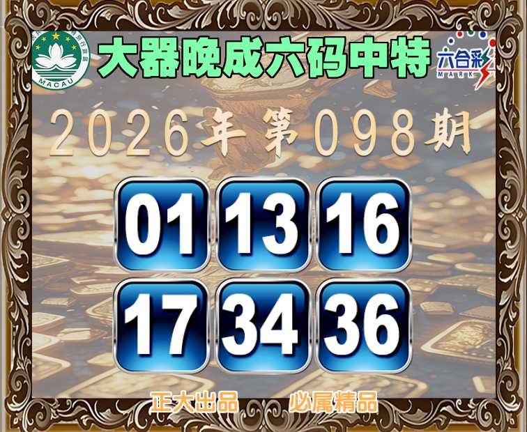 098期:【大器晚成】 🏵️六码中特🏵️【01.13.16.17.34.36】开:17