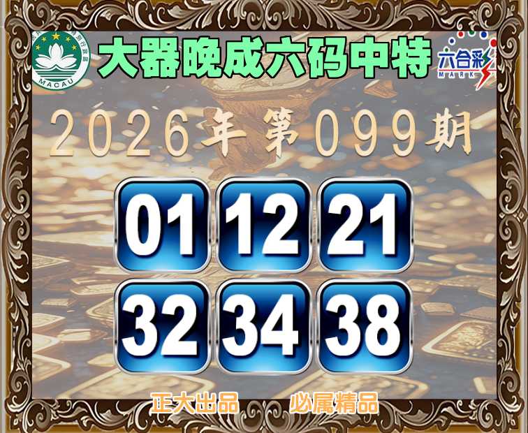 099期:【大器晚成】 🏵️六码中特🏵️【01.12.21.32.34.38】开:12