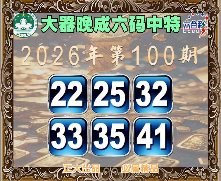 100期:【大器晚成】 🏵️六码中特🏵️【22.25.32.33.35.41】开:33