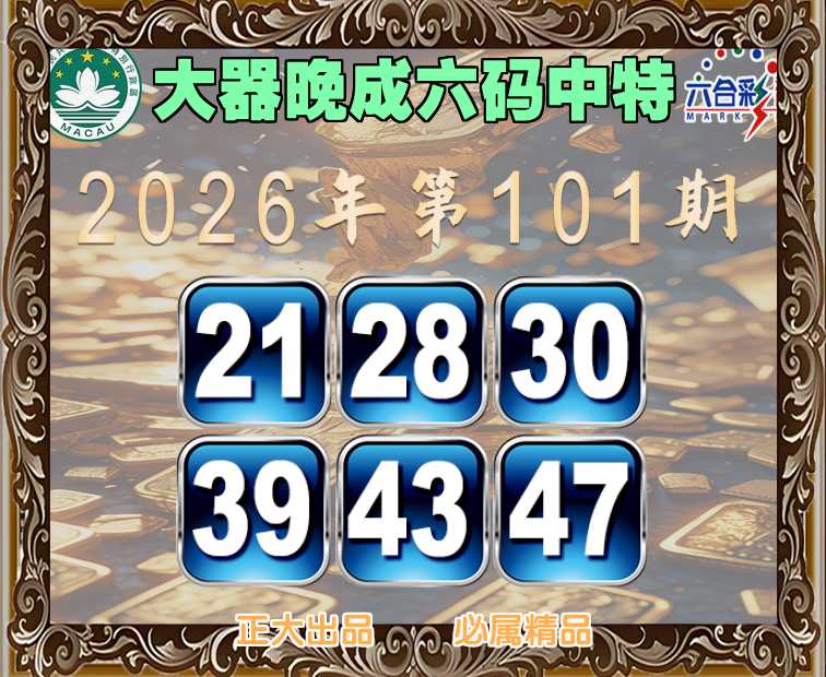 101期:【大器晚成】 🏵️六码中特🏵️【21.28.30.39.43.47】开:39