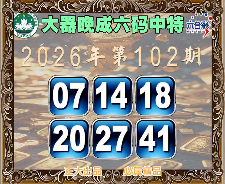 102期:【大器晚成】 🏵️六码中特🏵️【07.14.18.20.27.41】开:20