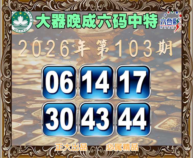 103期:【大器晚成】 🏵️六码中特🏵️【06.14.17.30.43.44】开:06准13:00公开验证