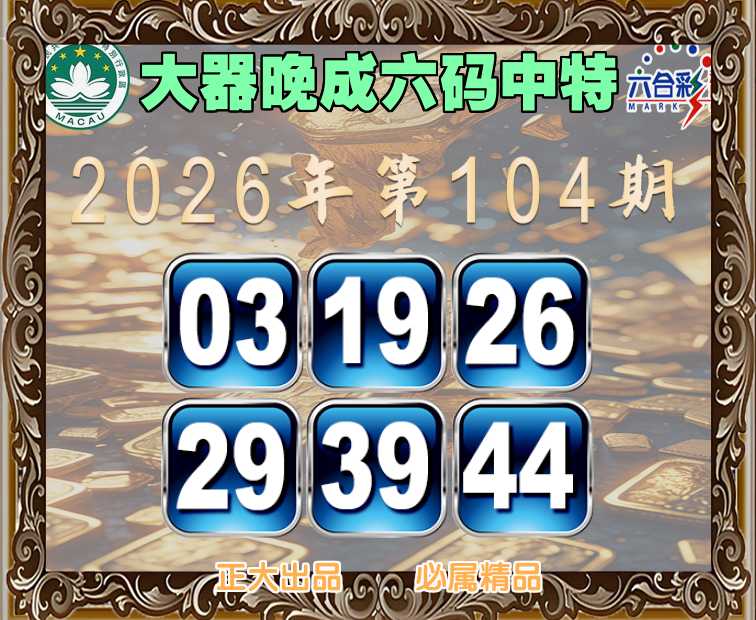 104期:【大器晚成】 🏵️六码中特🏵️【03.19.26.29.39.44】开:01