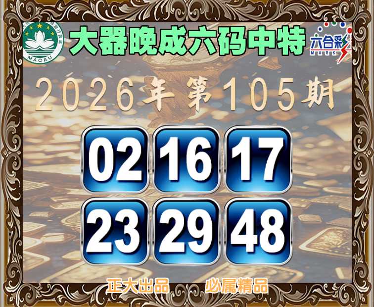 105期:【大器晚成】 🏵️六码中特🏵️【02.16.17.23.29.48】开:00准