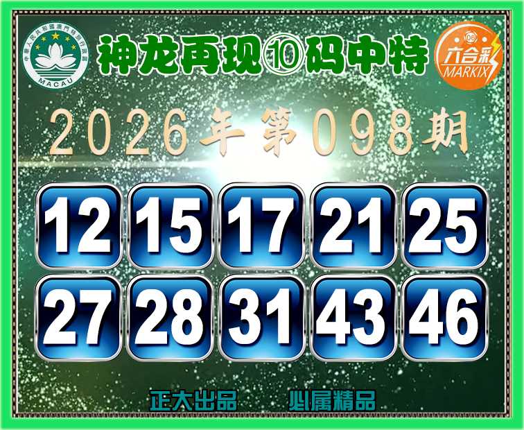 098期:『神龙再现』 ⛩️⑩码中特⛩️开:17