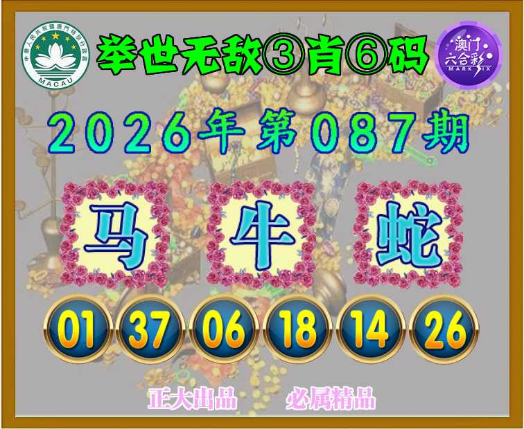087期:『举世无敌』 🧣③肖⑥码🧣【马牛】开:蛇26