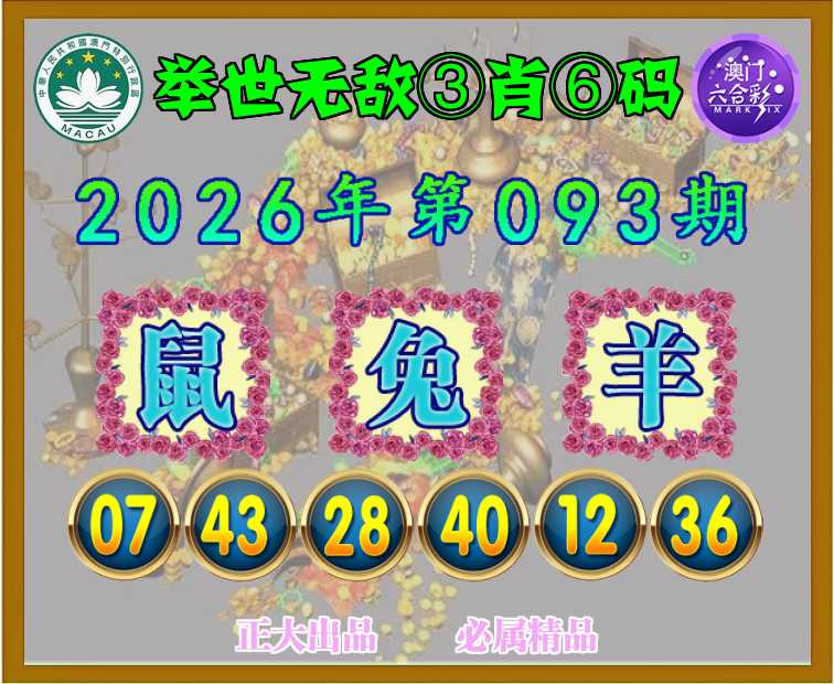 093期:『举世无敌』 🧣③肖⑥码🧣【鼠羊】开:兔40